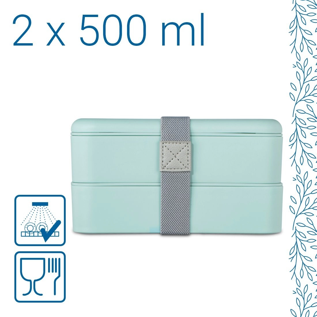 Praktický dvoupatrový lunch box Xavax TO GO o objemu 500 ml umožní nosit si do práce, do školy i na cesty své oblíbené pokrmy. Díky dvěma odděleným přihrádkám udrží jídlo přehledně oddělené, silikonové těsnění zajistí spolehlivou těsnost a elastický popruh vše bezpečně spojí dohromady. Stylové provedení a odolné materiály zaručují dlouhou životnost a snadné čištění v myčce.