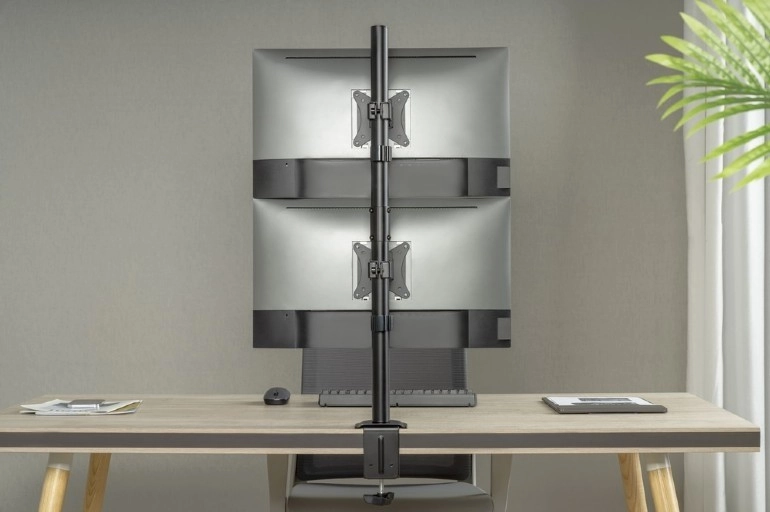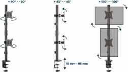 Tento kovový stojan pro dva monitory umožňuje uspořádat displeje nad sebou a vytvořit tak kompaktní, ergonomické a produktivní pracoviště. Díky flexibilním kloubům snadno nastavíte náklon, otáčení i orientaci z na šířku na výšku a naopak.