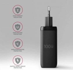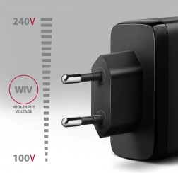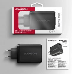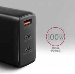 Axagon ACU‑DPQ100 je univerzální nabíječka s maximálním výkonem 100 W, která zvládne napájet notebook, telefon i sluchátka najednou. Dva oboustranné porty USB‑C s Power Delivery a klasický USB‑A s Quick Charge zaručují nejvyšší možnou rychlost nabíjení. Moderní GaN technologie přináší vyšší účinnost a menší rozměry – ideální řešení na cesty i na pracovní stůl.