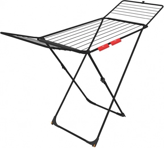 Sušák poskytuje 18 metrů sušicí plochy, má dva integrované držáky na drobné prádlo a zámek křídel proti samovolnému otevření. Kolečka s ochranou zajišťují hladký přesun po bytě, i když je sušák plně naložený. Kvalitní zpracování a odolná konstrukce přináší dlouhou životnost a bezstarostné používání.