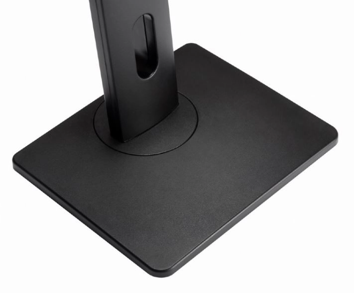 Stojan má stabilní základnu a pevný design, který podporuje bezpečné umístění monitoru na stole.