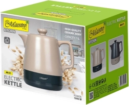 Zažijte pohodlné vaření vody s keramickou rychlovarnou konvicí MAESTRO, která spojuje nadčasový vzhled s praktickou výbavou pro každodenní použití. Objem 1 l je ideální do menších domácností i kanceláře a příkon 1200 W zajistí rychlý a tichý ohřev. Keramické tělo v béžovém provedení je odolné a snadno se čistí.