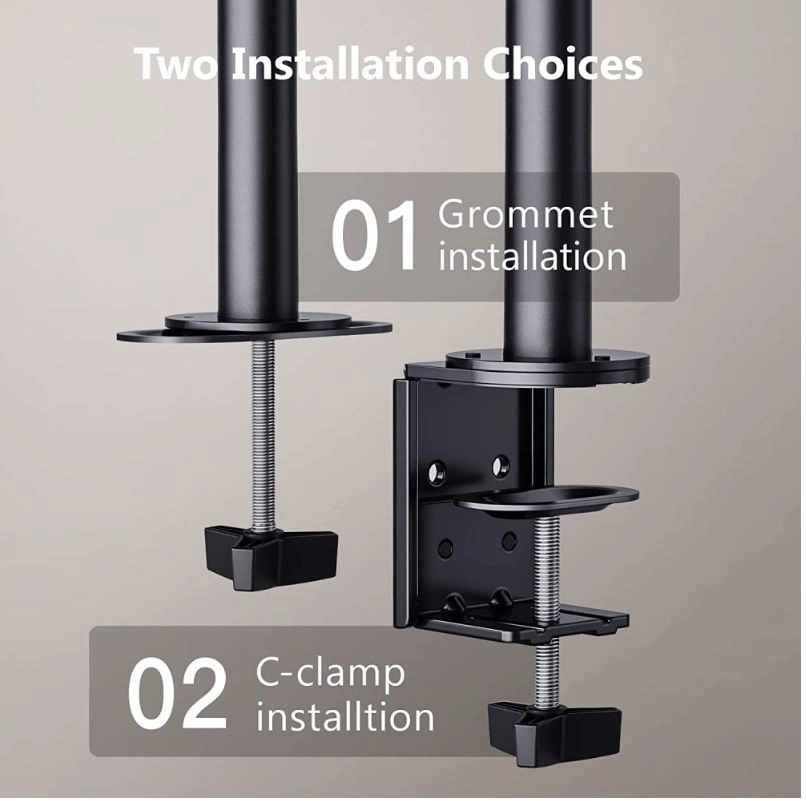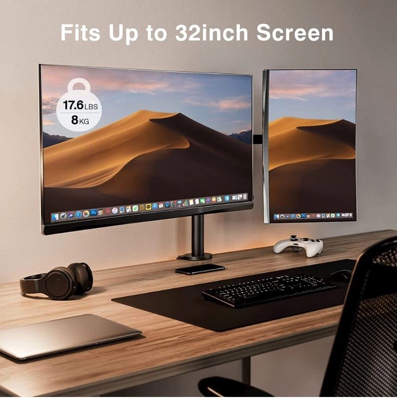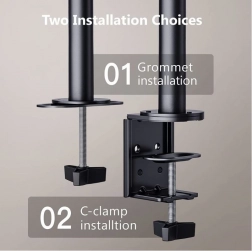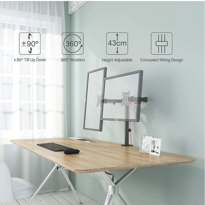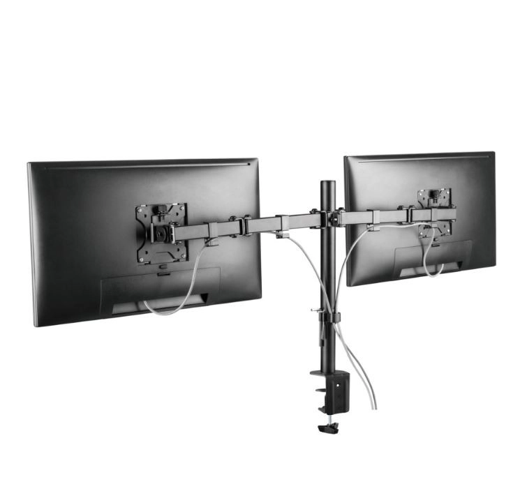 Duální držák nabízí plynulou otočnost a náklon monitorů ve všech směrech, což usnadňuje nalezení optimálního úhlu pohledu.