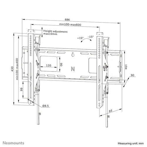 Nosnost 125 kg a široká kompatibilita VESA 100×100 až 600×400 mm umožní bezpečně připevnit velké TV i interaktivní displeje až do úhlopříčky 86".
