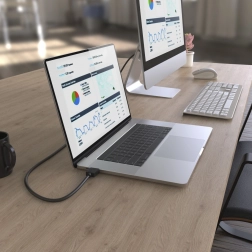- Slim design – tenké konektory a flexibilní plášť pro snadné vedení za TV či monitorem