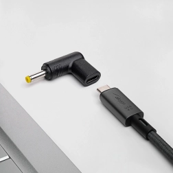 Jednoduše připojte adaptér k USB‑C nabíječce a napájejte kompatibilní notebook, například vybrané modely LENOVO s konektorem 4.0 × 1.7 mm. Před použitím se ujistěte, že má váš napájecí zdroj dostatečný výkon pro dané zařízení – adaptér výkon nezvyšuje.