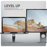 Stojan disponuje chytrým řešením s dvojitým kloubem, které umožňuje plynulé nastavení výšky obrazovky notebooku tak, aby byla na úrovni externího monitoru. To zlepšuje ergonomii a komfort při práci, což zároveň zvyšuje produktivitu. Větrací otvory stojanu umožňují optimální odvod tepla z notebooku, čímž zvyšují jeho výkon a životnost.