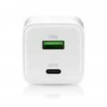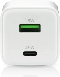 Dva výstupy – USB‑C PD/PPS 45 W a USB‑A QC4+ – vám umožní flexibilně nabíjet různá zařízení. Široký vstupní rozsah 100–240 V / 50–60 Hz zaručuje použití po celém světě. Vysoce účinná konstrukce splňuje náročné energetické standardy a minimalizuje zahřívání i spotřebu ve standby režimu.