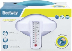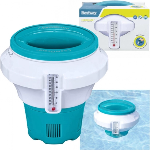 Udržujte vodu v bazénu a vířivce perfektně čistou a bezpečnou. Plovoucí dávkovač chemie BESTWAY CHEMGUARD s integrovaným teploměrem umožňuje přesné dávkování chloru či bromu, má nastavitelné uvolňování, dětskou pojistku a snadné čtení teploty ve °C i °F.
