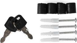 Součástí balení je montážní sada včetně čtyř kolíků a distančních podložek, což umožňuje okamžitou instalaci po vybalení. Schránka obsahuje dva klíče pro zvýšenou bezpečnost.