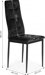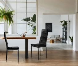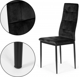 Vylaďte svůj interiér stylovou sadou židlí, které skvěle ladí s rodinným stolem v kuchyni i jídelně. Černý, prošívaný velur působí luxusně, snadno se kombinuje a dodá prostoru moderní charakter. Díky ergonomicky tvarovanému vysokému opěradlu a kvalitní PUR pěně je sezení pohodlné každý den.
