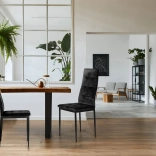 Čalounění z příjemného černého veluru s dekorativním prošíváním dodává židlím moderní vzhled a zvyšuje pohodlí při sezení.