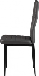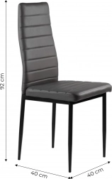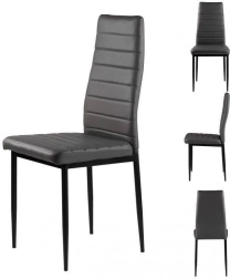 Sada čtyř židlí skvěle doplňuje váš jídelní nebo obývací pokoj díky modernímu designu s ergonomickými prvky. Šedé čalounění z eko-kůže s vodorovným prošíváním nejen dobře vypadá, ale také poskytuje maximální pohodlí při sezení. Černé kovové nohy zajišťují stabilitu a odolnost.