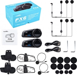 Model FX6 umožňuje připojení až 6 interkomů současně s dosahem až 1000 metrů. Skvělá volba pro skupinové jízdy a konektivitu s různými zařízeními pomocí Bluetooth 5.0.
