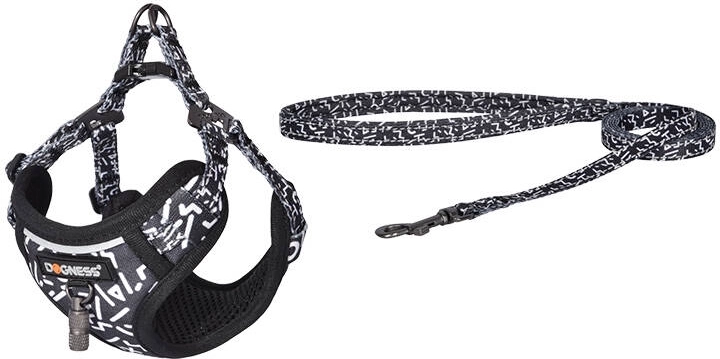 Stylová černobílá sada Dogness spojuje vodítko o délce 1,5 m a pohodlný postroj pro každodenní procházky. Díky kombinaci odolného nylonu, prodyšné síťoviny a pevných kovových prvků ze slitiny zinku nabízí maximální komfort a bezpečí pro vás i vašeho psa.