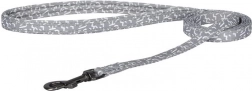 Odolné nylonové vodítko s reflexním vzorem zvyšuje bezpečnost při večerních procházkách. Kovová karabina umožňuje rychlé a jisté připnutí k postroji.