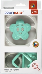 Chrastítka splňují náročné hygienické normy, neobsahují uvolnitelné malé části a mají hladké tvary bez ostrých hran pro bezpečné používání. Vybrat si můžete ze dvou variant motivu a z několika atraktivních barev, které upoutají pozornost miminka.