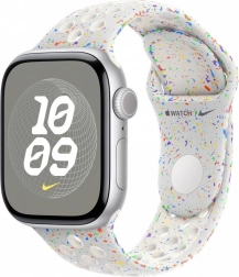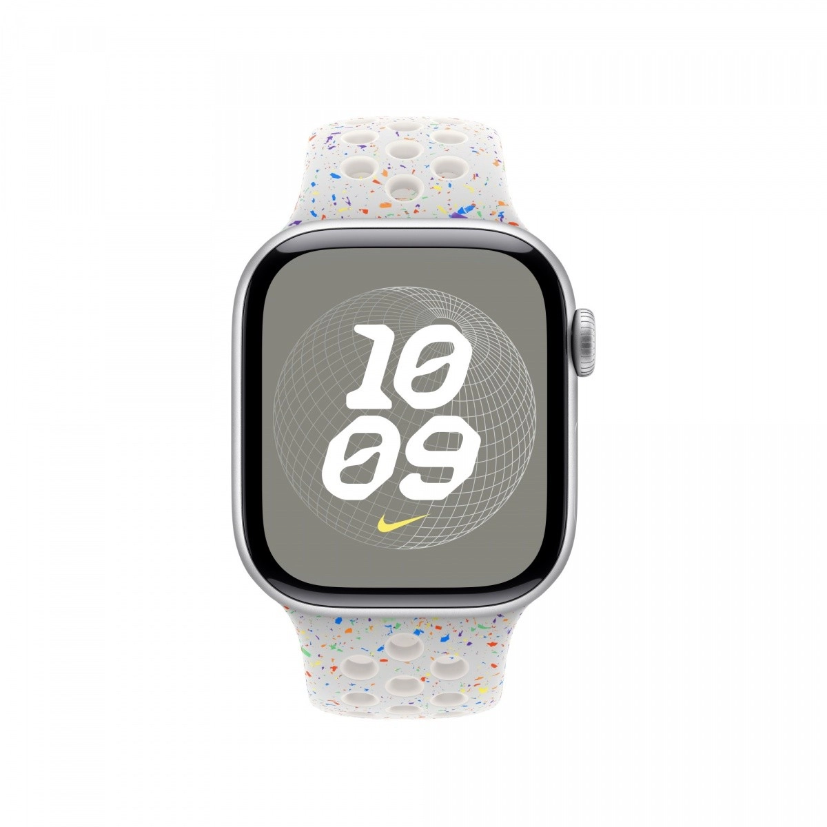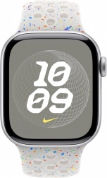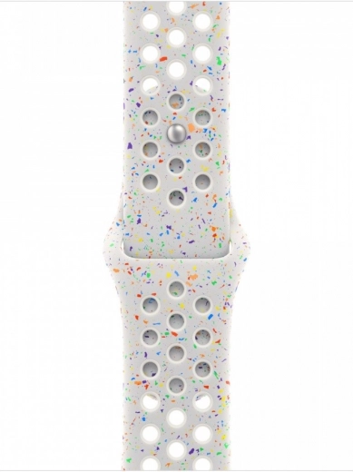 Stylový a funkční sportovní pásek NIKE pro Apple Watch 42 mm v odstínu čisté platiny kombinuje pevnost a odolnost s překvapivě měkkým a příjemným materiálem. Speciálně perforovaný design zvyšuje prodyšnost, zatímco barevné vločky v náhodném rozložení dodávají každému kusu jedinečný vzhled. Matně upravené hliníkové zapínání s drukem a poutkem zajišťuje bezpečné a pohodlné nošení. Vyrobeno s ohledem na přírodu – obsahuje minimálně 30 % recyklovaného fluoroelastomeru.