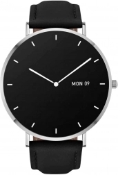 - Ultratenká a lehká; stříbrné tělo, černý kožený pásek