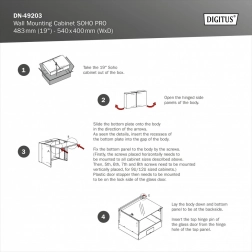 Nástěnná 19" skříň DIGITUS SOHO PRO přináší profesionální správu kabeláže a zařízení v elegantním, černém provedení. Skleněné přední dveře zlepšují přehled, zatímco větrací otvory podporují aktivní i pasivní chlazení. Vstupy pro kabely v horní i spodní části usnadňují čisté vedení kabeláže.