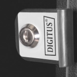 Ocelová konstrukce z plechu o tloušťce 1,1–1,5 mm zaručuje vysokou pevnost a odolnost, 19" profily jsou pozinkované a s možností hloubkové regulace. Závěsy dveří lze přehodit na opačnou stranu a jednobodový zámek zajistí rychlé a bezpečné uzavření.