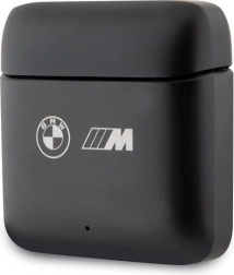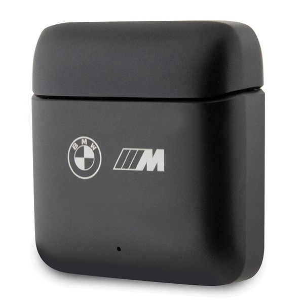 Odolné kartáčované kovové pouzdro chrání sluchátka, slouží jako powerbanka a podtrhuje luxusní vzhled s ikonickým znakem BMW M.