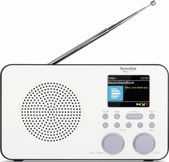 Objevte kompaktní rádio VIOLA 2 C IR s podporou DAB+, FM i internetového rádia. Velký 2,4" barevný displej, pohodlné ovládání, Wi‑Fi pro podcasty a streamy, integrovaný reproduktor, výstup na sluchátka a duální budík dělají z tohoto modelu skvělého společníka doma i na cestách.
