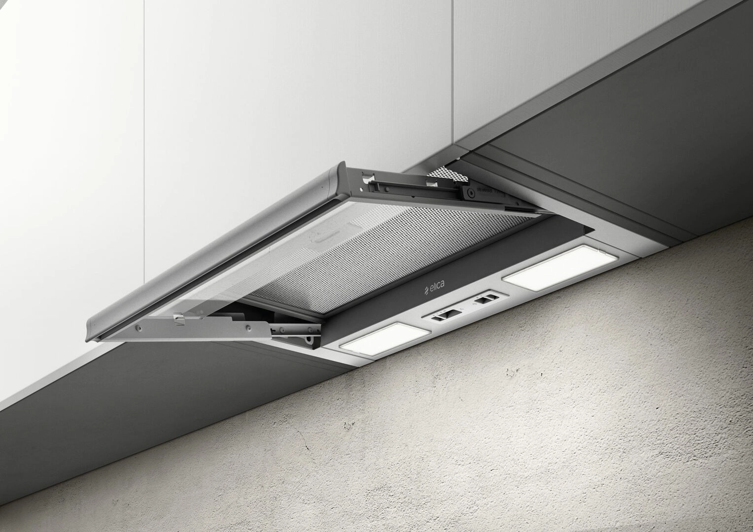 Vestavný odsavač par Ciak 2.0 je navržen pro pohodlné každodenní vaření. Jeho štíhlé tělo se skryje do skříňky, zatímco výsuvná lišta zvětší plochu sání přesně tehdy, kdy to potřebujete. Účinná filtrace a rovnoměrné LED osvětlení zajišťují čistý vzduch a dobrou viditelnost nad varnou deskou.