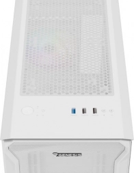 Na horním panelu najdete vše důležité: 1× USB 3.0, 2× USB 2.0 a 2× HD Audio jack. Jemná síťovina a prachové filtry pomáhají udržet interiér čistý, takže váš počítač bude dlouhodobě spolehlivý a esteticky působivý.
