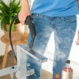 Textilní nástavec z edice Textile Edition umožní vyhlazovat záhyby oděvů a rychle osvěžovat tkaniny. Dvoustupňová regulace páry přizpůsobí intenzitu konkrétním povrchům a stupni znečištění. Integrovaný zásobník na příslušenství, kabel i hadici zajišťuje pořádek, zatímco LED pásek přehledně indikuje provozní stavy.