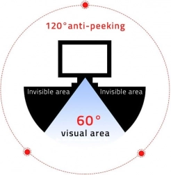 Filtr nabízí vysokou úroveň ochrany dat prostřednictvím technologie mikrožaluzií, zabraňující nechtěným pohledům z vedlejšího úhlu.