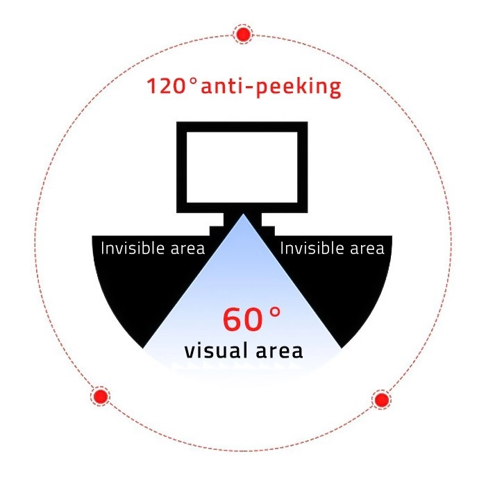 Technologie mikrožaluzií zajišťuje, že obraz je jasně viditelný zepředu, blokující nevítané boční pohledy. Díky tomu, jakmile je úhel pohledu 30 stupňů, obraz se zcela ztmavne, což zajišťuje dokonalé soukromí.