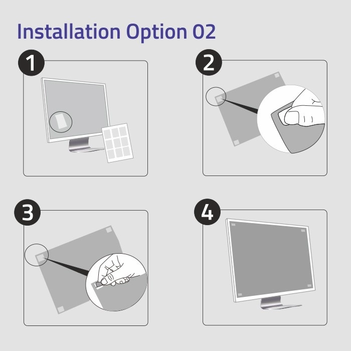 Jednoduchá instalace a vysoce kvalitní materiály zajišťují, že váš monitor zůstane čistý a nepoškozený. Filtr lze snadno nainstalovat pomocí klipů přilnavých na rám monitoru nebo transparentních pásků přímo na obrazovku.