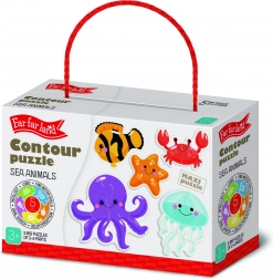 Objevte svět moře s obrysovými puzzle určenými pro nejmenší. Každý z 5 obrázků se skládá jen z 2–4 dílků, takže děti rychle zažijí úspěch a radost ze skládání. Jasné barvy a přehledné tvary podporují soustředění a rozvoj dovedností.