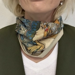 Objevte elegantní bandanu inspirovanou ikonickou secesní estetikou Alfonse Muchy. Motiv Zodiak dodá vašemu outfitu umělecký a nadčasový charakter, zatímco lehký polyester zajistí příjemné nošení a snadnou údržbu.