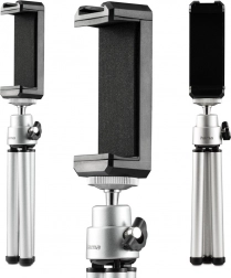 Mini stativ Hama Fancy 2v1 je univerzální nástroj vhodný pro fotografování a nahrávání videí. Praktický držák telefonu umožňuje rychlé střídání přístrojů a je kompatibilní jak s telefony, tak s fotoaparáty díky 1/4'' šroubu.