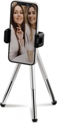 Stativ zahrnuje systém 2v1, který funguje jako držák pro smartphone i se závitem 1/4'' pro fotoaparáty, což rozšiřuje jeho variabilitu.