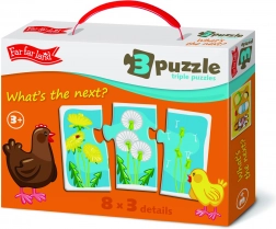 Objevte kouzlo Far Far Land puzzle trojice, které dětem přináší nejen radost z hraní, ale také rozvoj logického myšlení a rozpoznávacích schopností. Toto balení obsahuje celkem 8 obrázků, z nichž každý se skládá ze tří dílků: