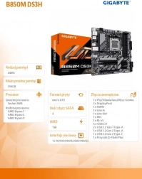 Základní deska GIGABYTE B850M DS3H pro patici AMD AM5 přináší snadné zvýšení herního výkonu díky režimu X3D Turbo na jedno kliknutí, podporu procesorů Ryzen 9000/8000/7000, dvoukanálovou DDR5, extrémně rychlé úložiště s M.2 PCIe 5.0 a síť 2.5 GbE – to vše v praktickém provedení s chytrými zámky EZ-Latch pro bezšroubovou instalaci.