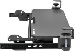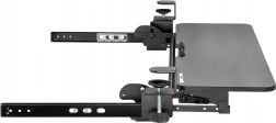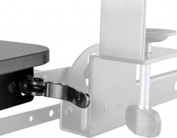 Držák je vybaven nastavitelnými svorkami pro jednoduché upevnění pod deskou stolu, což umožňuje snadné přizpůsobení a instalaci.