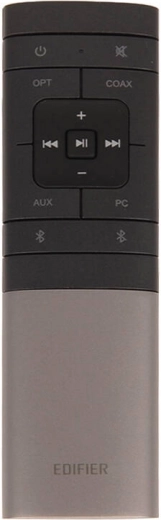 Ovládejte svůj 2.1 reproduktorový systém EDIFIER S351DB pohodlně na dálku. Tento kompaktní ovladač umožňuje rychle přepínat zdroje zvuku (OPT, COAX, AUX, PC, Bluetooth), plynule upravovat hlasitost, ztlumit přehrávání, přeskakovat skladby a zapnout/vypnout reproduktory. Napájení zajišťují 2 baterie AAA.