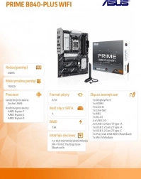 ASUS PRIME B840-PLUS WIFI je univerzální základ pro moderní počítač, který kombinuje spolehlivost, efektivní správu napájení a široké možnosti připojení. Díky podpoře procesorů AMD Ryzen řady 9000 a optimalizacím v softwaru i firmwaru poskytuje hladký chod jak při práci, tak při hraní či AI úlohách.