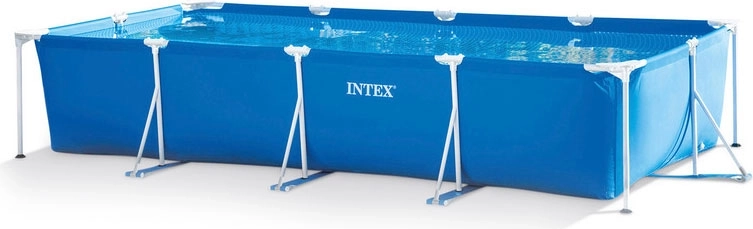 Obdélníkový rámový bazén INTEX s rozměry 450 × 220 × 84 cm nabízí kapacitu 7127 l, odolnou 3vrstvou PVC konstrukci a antikorozní ocelový rám. Snadné vypouštění zajistí ventil pro řízení průtoku. Vnitřní modrobílá mozaika dodává vodě křišťálový vzhled. Ideální pro rodinné letní osvěžení od 6 let.