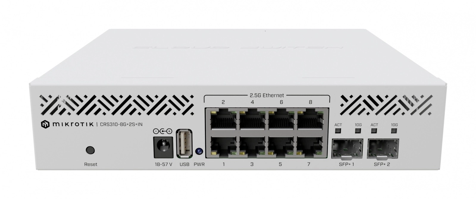 Špičkový switch MIKROTIK CRS310-8G-2S+IN přináší vysokorychlostní konektivitu do kompaktního těla: 8× 2.5G Ethernet a 2× 10G SFP+ s podporou více rychlostí (1G/2.5G/10G). Díky tomu můžete flexibilně kombinovat linky nebo jej použít jako až 10× 2.5G řešení. Ideální volba pro upgrade stávající gigabitové infrastruktury na vyšší rychlosti.
