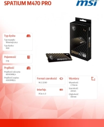 Zrychlete svůj počítač se SSD MSI SPATIUM M470 PRO 1 TB. Díky rozhraní PCIe 4.0 NVMe nabízí sekvenční rychlosti až 6000/5000 MB/s, spolehlivost s funkcemi ochrany dat a ECC a dlouhou životnost až 640 TBW. Ideální pro hraní her, tvorbu obsahu i náročnou produktivitu.