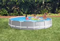 Nadzemní bazén INTEX PRISM FRAME kombinuje robustní rám s antikorozní úpravou a vyztuženou miskou z trojvrstvého PVC. Výsledkem je pevná a bezpečná konstrukce vhodná pro každodenní letní koupání. Díky výšce 76 cm je perfektní pro děti i dospělé, kteří hledají rychlé ochlazení a pohodlné domácí koupání.
