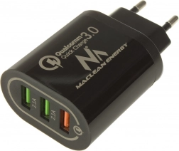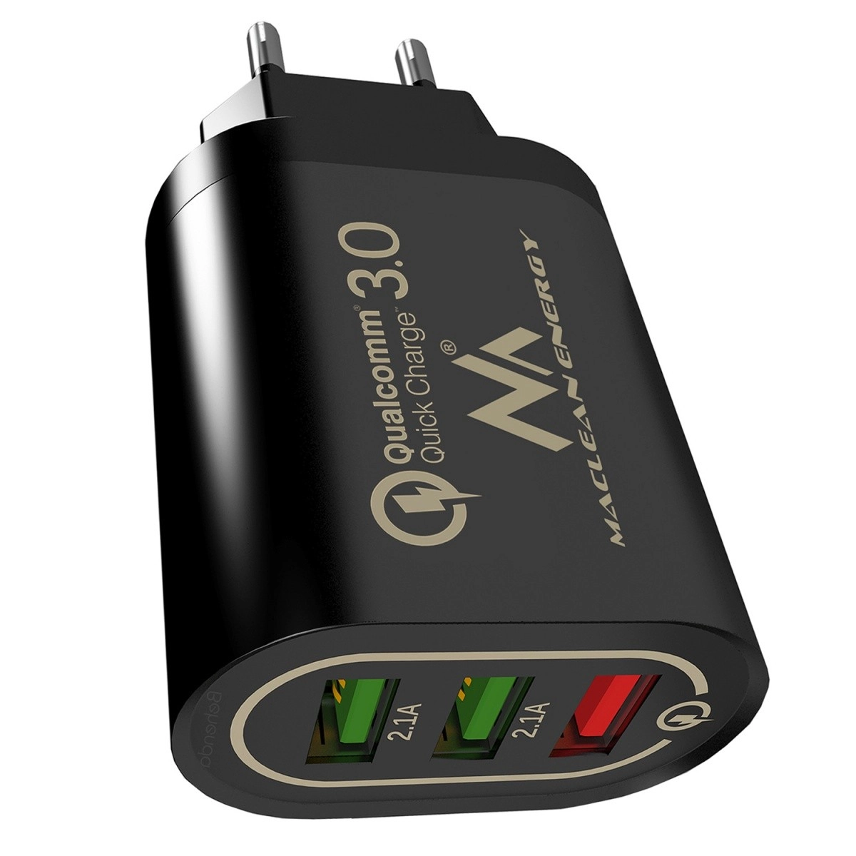 Tato kompaktní a výkonná síťová nabíječka MACLEAN ENERGY s třemi USB porty umožňuje nabíjet až tři zařízení současně. Díky technologii Qualcomm Quick Charge 3.0 zkrátíte čas strávený u zásuvky a získáte stabilní a bezpečné nabíjení pro telefony, tablety, sluchátka i další elektroniku.