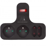 Zásuvka Maclean Energy zajišťuje bezpečné a efektivní používání elektrických zařízení. Díky čtyřem zásuvkám (2 ploché a 2 typu schuko) můžete připojit několik zařízení najednou a snadno je ovládat jedním vypínačem.