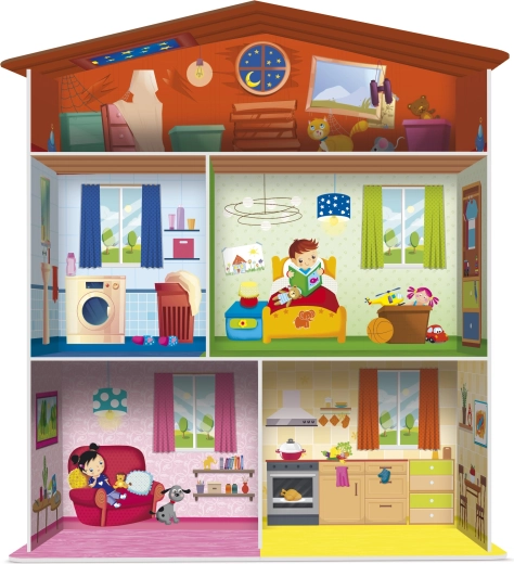 Součástí sady je domeček, puzzle ve tvaru domácího vybavení a 15 stojánků na kartičky, díky kterým lze prvky přehledně vystavit nebo je využít pro různé herní scénáře. Skvělá volba pro děti od 3 let, které se učí třídit, pojmenovávat a tvořit vlastní příběhy.