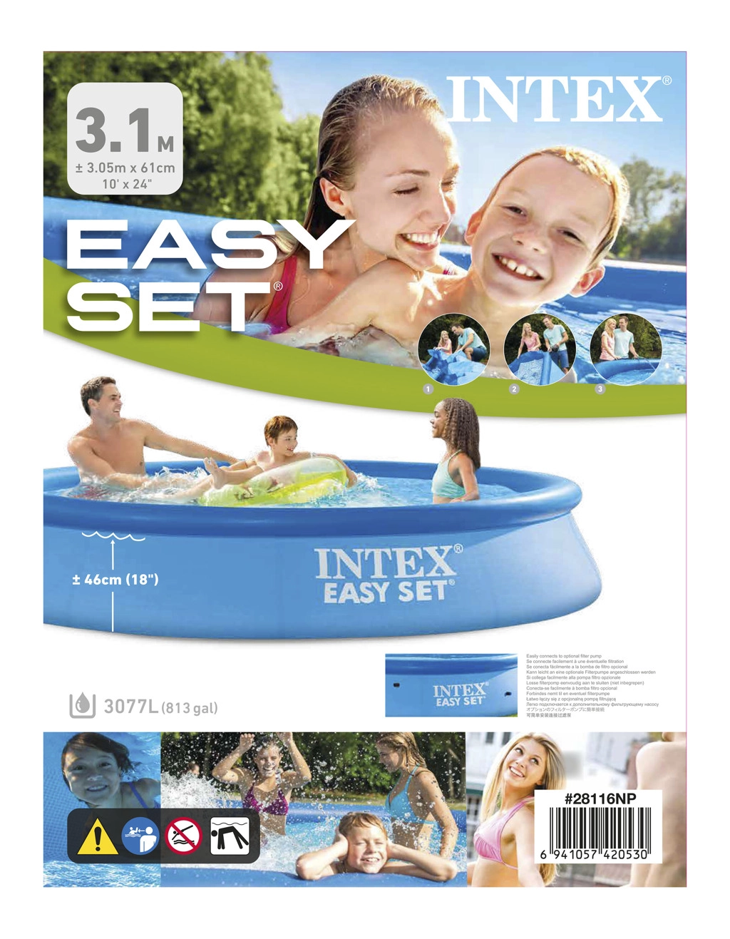 Průměr 305 cm a výška 61 cm poskytují dostatek prostoru pro vodní radovánky dětí i dospělých v pohodlí vaší zahrady.